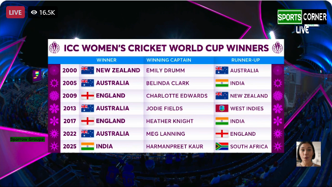 যত ক্ষণ লরা উলভার্ট ক্রিজ়ে ছিলেন, তত ক্ষণ স্বস্তি পাচ্ছিলেন না হরমনপ্রীত কৌর। সেমিফাইনালের পর ফাইনালেও শতরান করলেন উলভার্ট। কিন্তু দলকে জেতাতে পারলেন না তিনি। অবশেষে তৃতীয় বারের চেষ্টায় শাপমুক্তি ভারতের। ঘরের মাঠে বিশ্বচ্যাম্পিয়ন হল তারা।