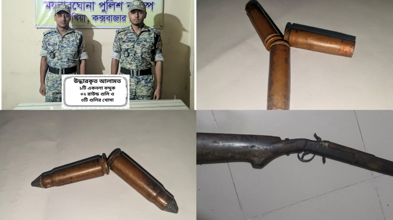 পরে ঘটনাস্থল তল্লাশি চালিয়ে একটি একনলা বন্দুক, দুই রাউন্ড গুলি এবং তিনটি খোসা উদ্ধার করা হয়।