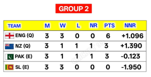 ৩ ম্যাচ শেষে নিউজিল্যান্ড ও পাকিস্তান উভয়ের ঝুলিতে সমান ৩ পয়েন্ট।