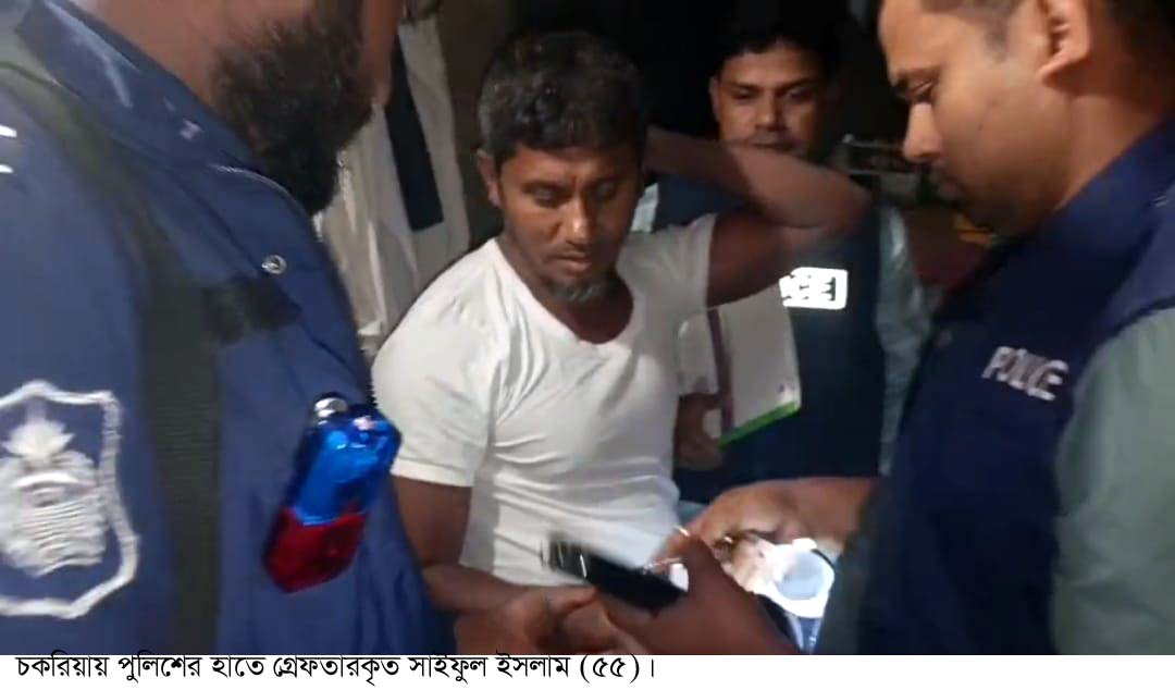 গ্রেফতারকৃত আসামী সাইফুল ইসলাম চকরিয়া উপজেলার হারাবং ইউনিয়নের ৯নং ওয়ার্ডের গোলাম সোবহানীয় ঘোনার মো.ইদ্রিসের ছেলে।